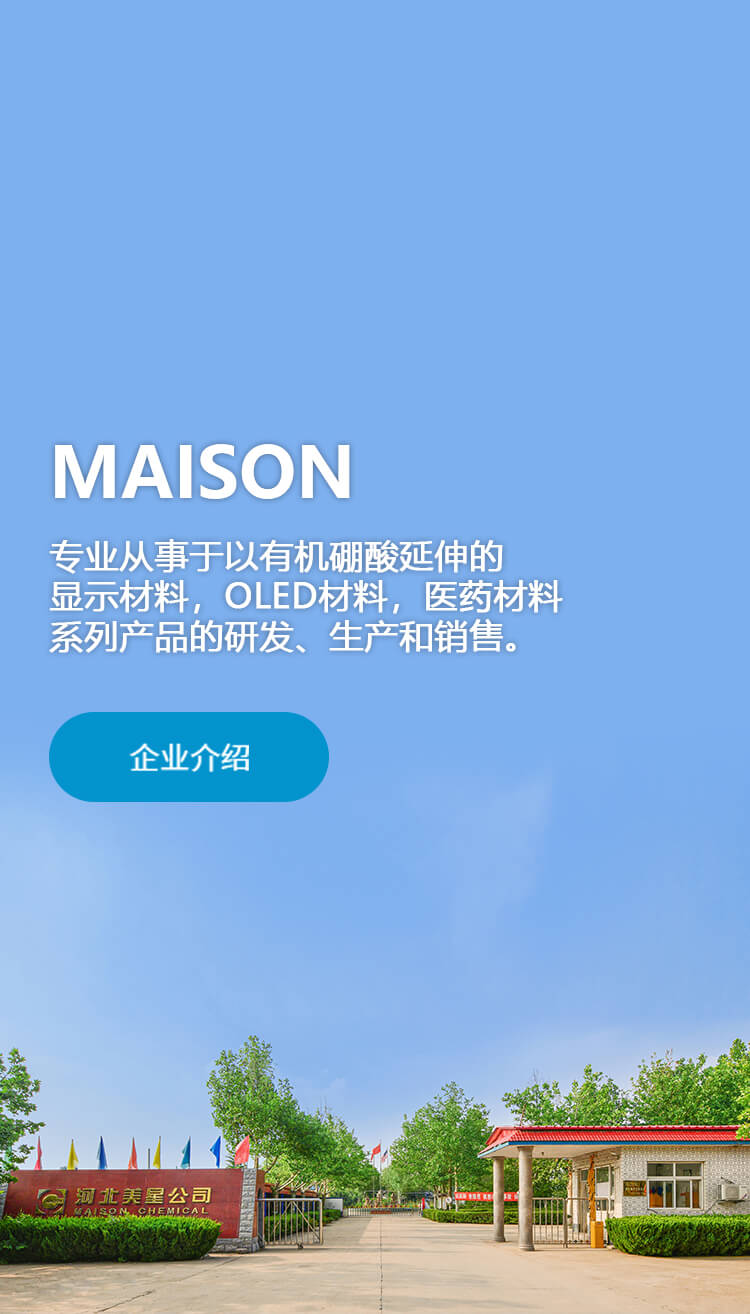 成立于2006年5月,專(zhuān)業(yè)從事有機(jī)硼酸、醫(yī)藥中間體、OLED中間體及液晶材料研發(fā)、生產(chǎn)、銷(xiāo)售的中外合資的高科技企業(yè)。產(chǎn)品廣泛應(yīng)用于醫(yī)藥、半導(dǎo)體顯示材料等領(lǐng)域。